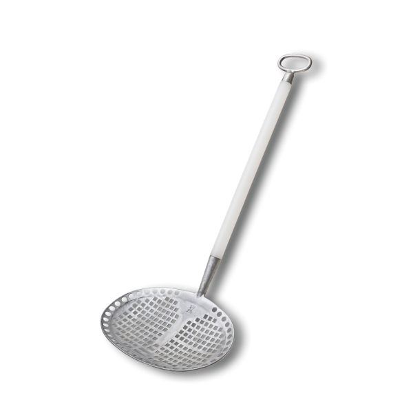 Zajemalka-cedilka za zajemanje klobas iz kotla. Lahko se uporablja tudi za precejanje večjih ocvirkov.