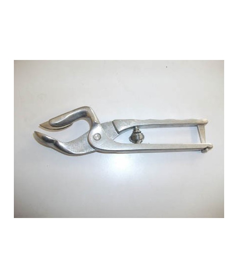 S sponko naredite četrt obrata, da jo postavite navpično, tako da bo vdolbina, ki jo nosi druga veja sponke, nameščena na lobanji, tik za grebenom, konica rezila mora biti rahlo nagnjene na dno grla. Ko je objemka na mestu, jo močno zaprite. Krvavitev mora biti obilna, mišice se sprostijo, kar omogoča hitro in učinkovito omamljanje.