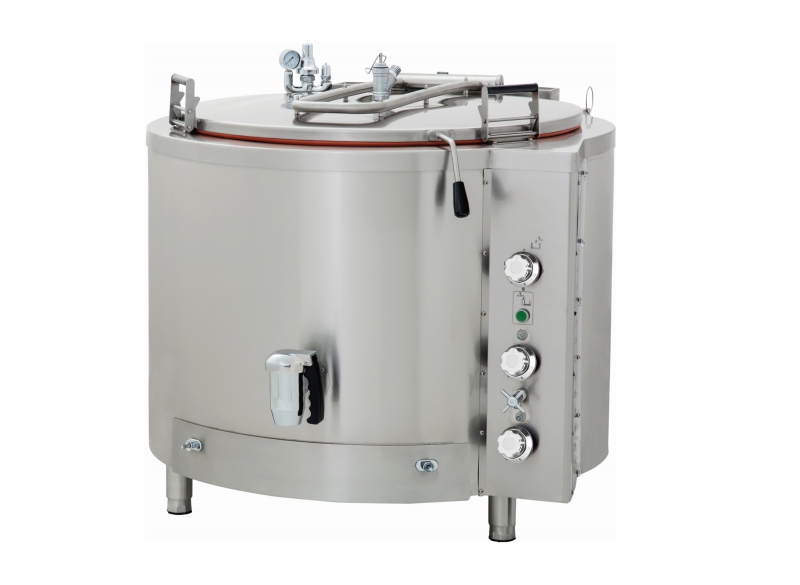 Ta kotel deluje na električni tok (400 V). Dvojno steno na notranji strani je mogoče napolniti z vodo, vir toplote pa se nahaja neposredno pod kotlom. Posledično ustvari zelo učinkovit posredni sistem ogrevanja. Varnostni termostat ščiti pred prenizko gladino vode, da se jedi ne zažgejo hitro. Zaradi tega je kotel idealen za tekoče jedi ali hrano, ki jo kuhate v vodi, kot so riž, krompir, meso in zelenjava. Zahvaljujoč dodatnemu izolacijskemu materialu sta izguba toplote in poraba energije čim manjši.